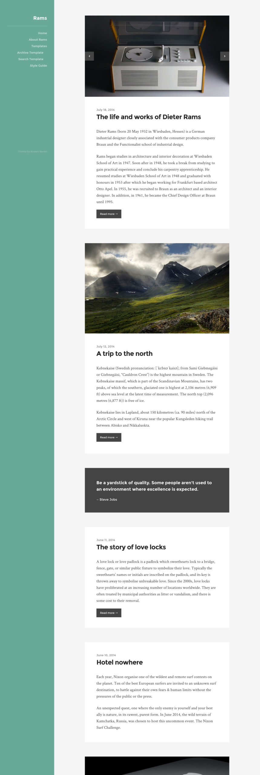 Ram, temiz, şık ve esnek bir tema ve blog, yazar ve yazarlar için mükemmel. Bu tema sabit kenar çubuğu ile tamamen duyarlı bir tasarıma sahip ve web sitesi farklı cihazlarda bile güzel kalacaktır.